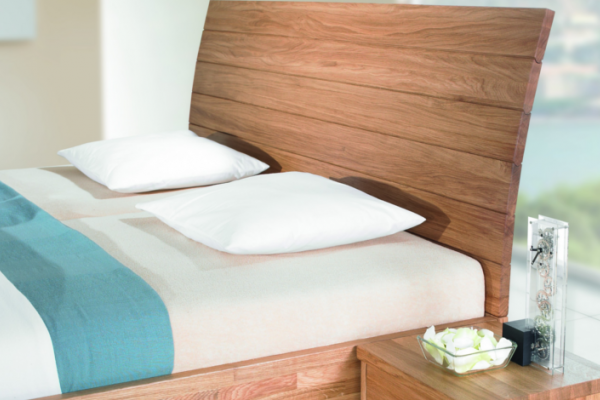 Dubová postel Calinda vychází konstrukčně z bukové řady našich postelí. Dominantou postele je mírně zaoblené hlavové čelo, které je zvýšené na 117 cm. Na této hlavové ploše velmi dobře vynikne kresba a charakteristika dubového masivu. Čelo se skládá ze šesti oble falcovaných lamel, které do sebe ladně zapadají. Celá postel je vyrobena z dubového masivu tloušťky 30 mm. Samozřejmě je postel možno vyrobit i z bukového masivu.