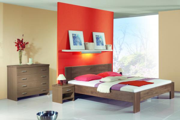 Postel jistě zaujme každého svými velmi jednoduchými až strohými liniemi. Dominantní je hladké zadní čelo, které ve spojení se širokými nohami zvýrazňuje jednoduchost a základní funkčnost postele a nabízí svému majiteli výjimečný pocit pevnosti a odolnosti. Je zde nastavitelná výška lehací plochy, základní výše horní hrany bočnice je 45/50 cm za jednu cenu.