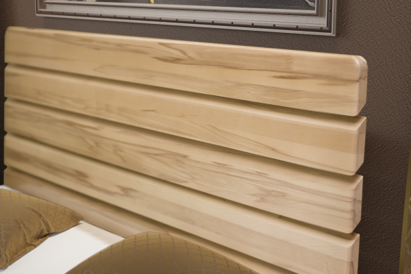 Postel Laura má jedinečný design. Má si Vás získat hlavně zadním čelem, které je mírně nakloněno a tvořeno z pěti našikmo nařízlých lamel. Bočnice jsou 30 cm vysoké a zaoblené pro větší komfort. Přední noha je řešena nestandartně a tvoří s postelí jedinečný vzhled. Je zde nastavitelná výška lehací plochy, základní výše horní hrany bočnice je 50 cm.